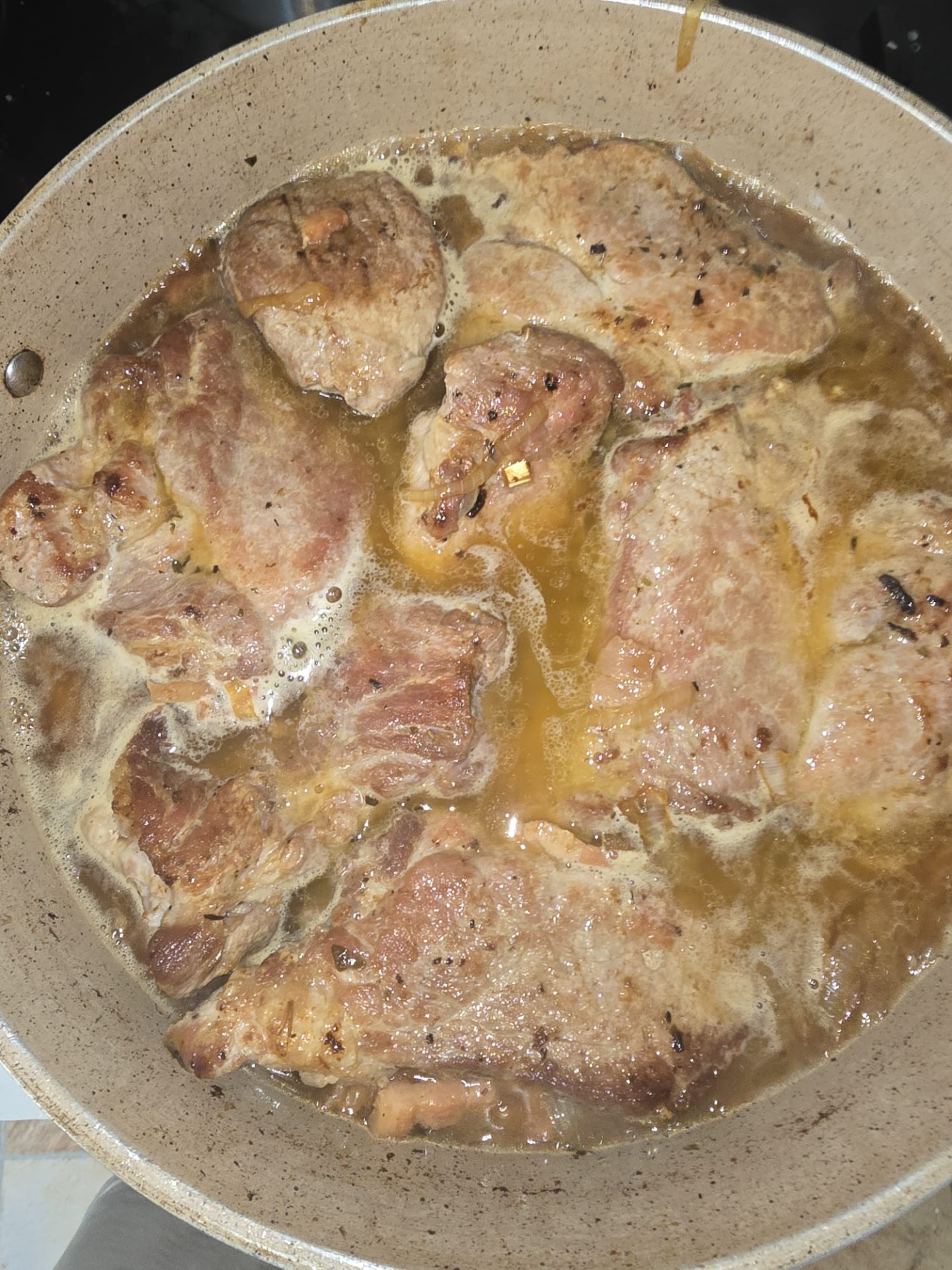 Intr-o tigaie adanca/cratita se pun uleiul si untul. Se pune ceafa la rumenit, pe ambele parti. Cand s-a rumenit, se scoate si se pune deoparte.